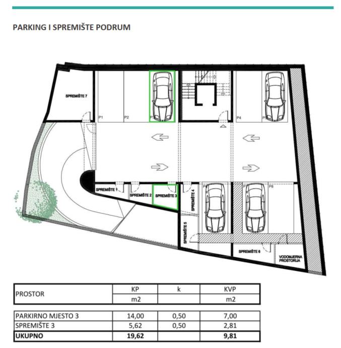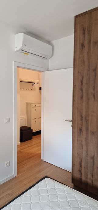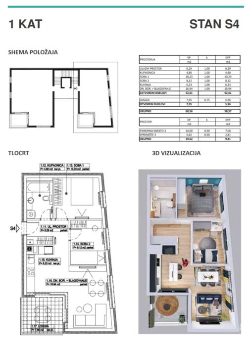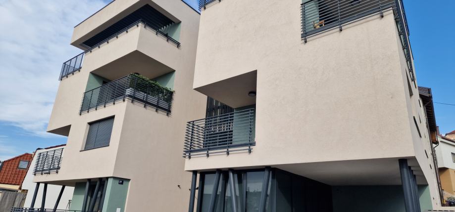 Stan se nalazi u modernoj zgradi s ukupno sedam luksuzno opremljenih stanova, dizalom i podzemnom garažom. Ukupna površina iznosi 68,38 m², a obuhvaća prostrani dnevni boravak s kuhinjom i blagovaonicom, spavaću sobu, dodatnu sobu (radna ili dječja soba), kupaonicu, balkon, te pripadajuće spremište i garažno parkirno mjesto (s pripremom za punjenje električnog vozila). Zgrada je etažirana, a energetski razred objekta je A+.