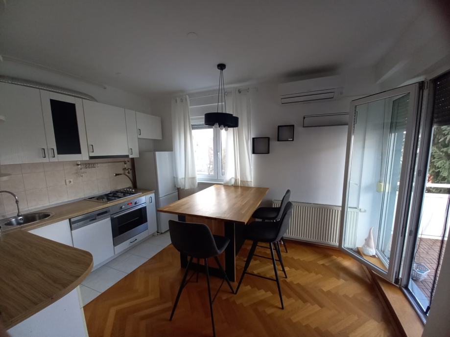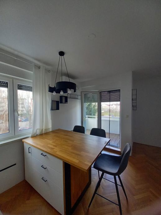 Iznajmljuje se stan od 45m2 na drugom katu stambene zgrade, stan je u potpunosti opremljen. Sastoji se od ulaznog dijela, dnevnog boravka s kuhinjom i blagovaonicom, jedne spavaće sobe, kupaonice i balkona te mu pripada sprema i vanjsko parkirno mjesto.