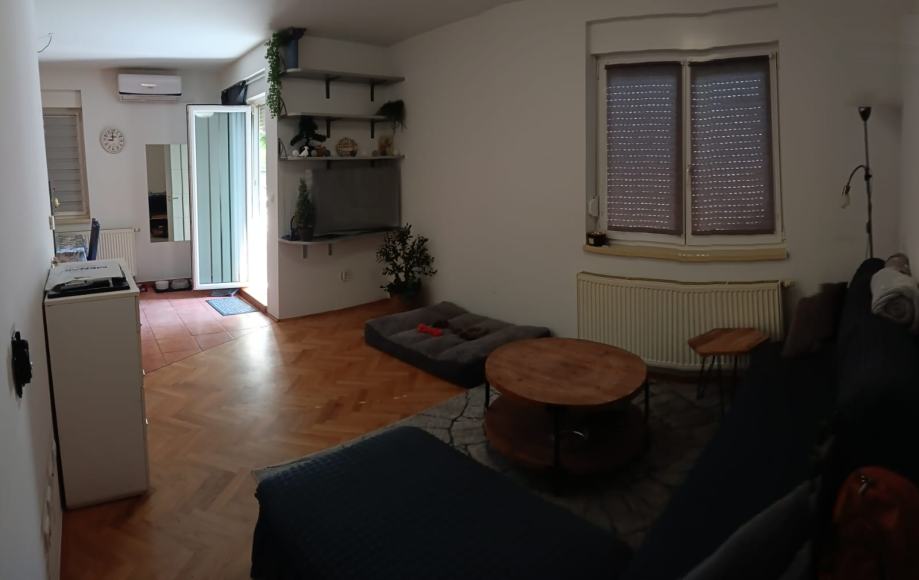 Kompletno namješten stan za dugoročni najam na Kajzerici u stabenoj zgradi, 45 m2, prizemlje: spavaća soba, dnevni boravak, kuhinja s blagovaonicom, hodnik, kupatilo sa WC-om i taraca s malim vrtom. Stanu pripada označeno privatno parkirno mjesto.