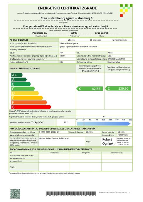 Izvrsna makro i mikro lokacija je veliki plus ovom stanu, a izvrstan energetski certifikat, razred C, je još jedna prednost u korist kupovine baš ovog stana, te Vam ga Agencija za promet nekretninama Centar poslovnih usluga d.o.o. toplo preporuča.