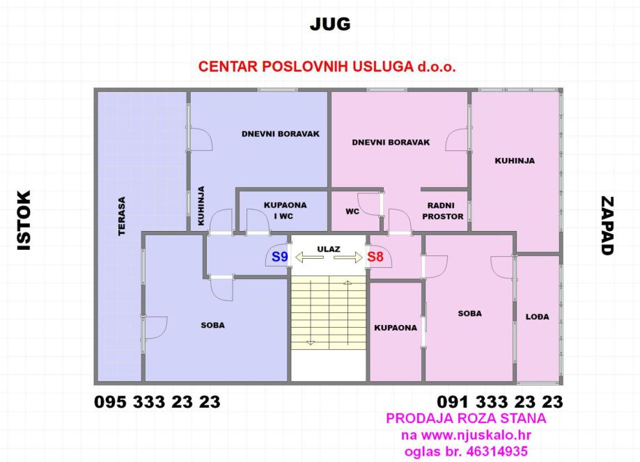 NAPOMENA: isti vlasnik prodaje i drugi stan na istom katu na www.njuskalo.hr broj oglasa: 46314935 tako da postoji mogućnost uklanjanja zida između dva stana i formiranje velikog dnevnog boravka i jednog prostranog TROSOBNOG STANA koji se prostire na cijeloj etaži.