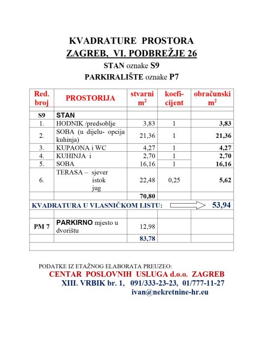 KONTAKT za razgled stana: 091/333-23-23, 01/777-11-27, 095/333-23-23, ivan@nekretnine-hr.eu (uz dogovor moguć razgled i vikendom, ali i videopozivom)