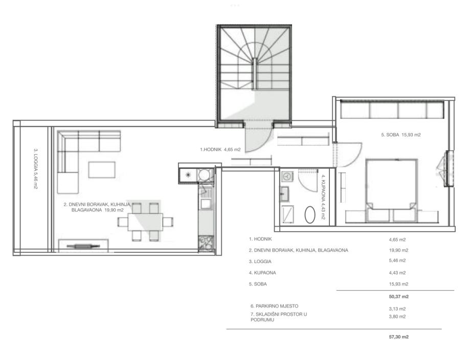 • Ukupna površina: 57,30 m²
