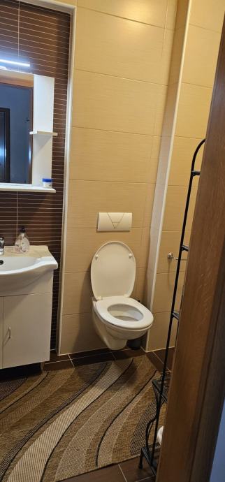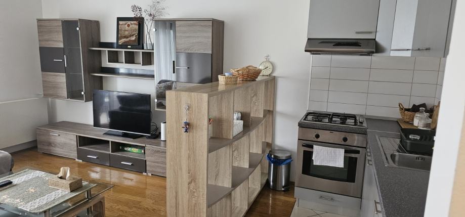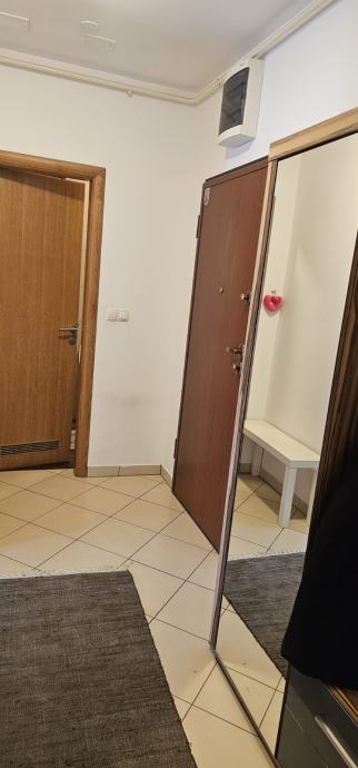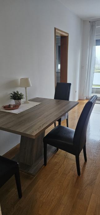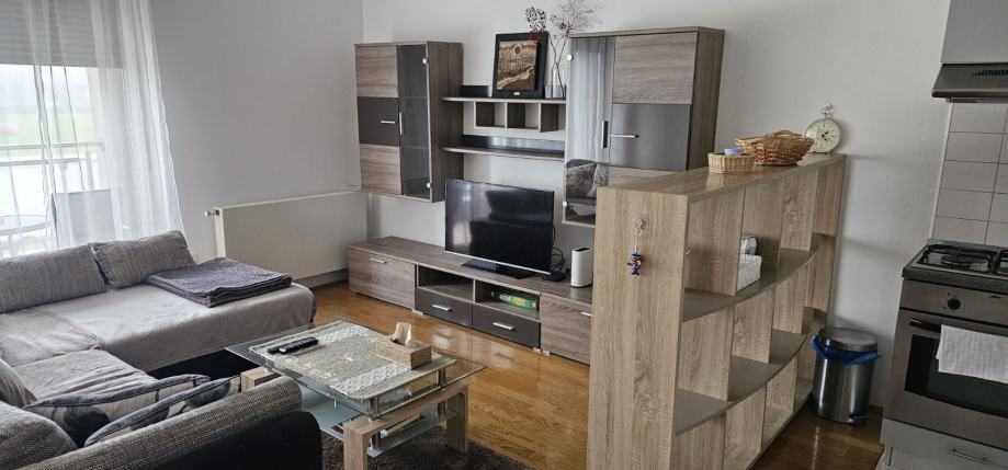 Iznajmljuje se stan površine 65m2 na trećem katu novije stambene zgrade, opremljen svim potrebnim kućanskim aparatima .Stan se sastoji od ulaznog djela,dnevnog boravka povezanog sa blagovaonom i kuhinjom,dvije spavaće sobe sa zajedničkim velikim balkonom,kupaonice te ima i vanjsko parkirno mjesto.Izvrsna lokacija odmah do Konzuma,škole i vrtića,režije po stvarnoj potrošnji (etažno plinsko grijanje). Kućni ljubimci nisu dozvoljeni. Cijena 800 €,kao i polog u visini jednog najma.