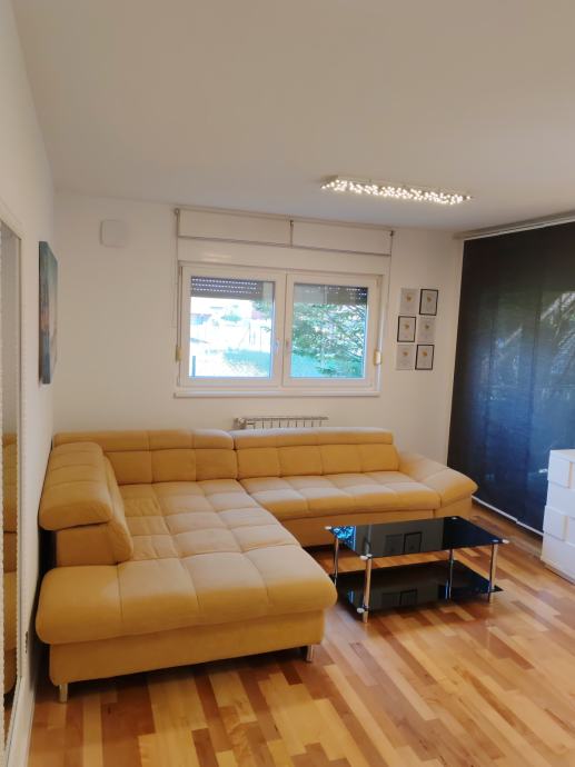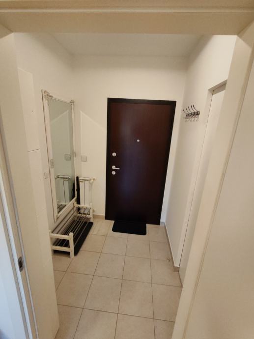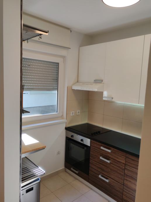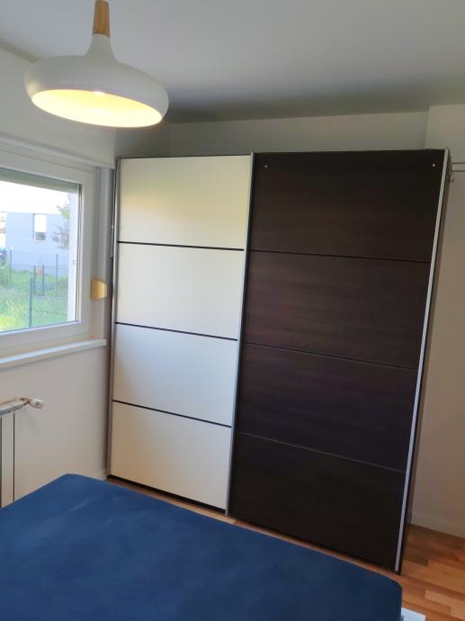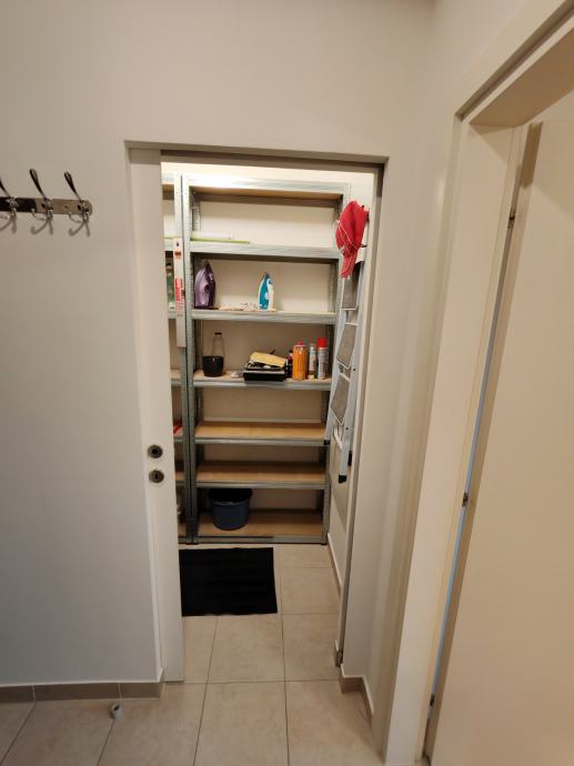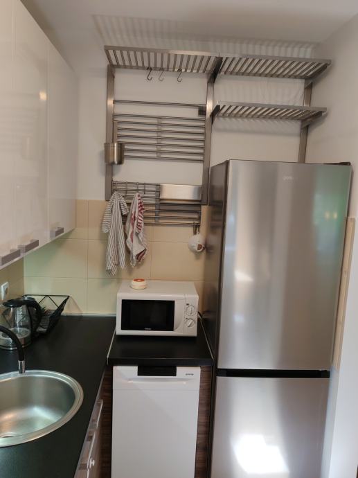 Stan je potpuno namješten, dva ormara, ostava, u kuhinji, perilica suđa, frižider, el. ploča, pećnica, napa, kuhalo, mikrovalna, usisavač.