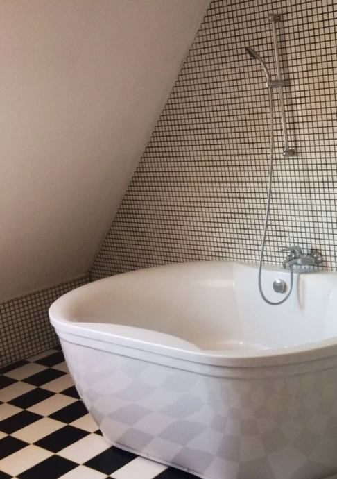 U stanu se nalazi luksuzna kupaonica veličine 12m2 sa velikom kadom i mali vešeraj gdje je mašina za veš/sušilica.