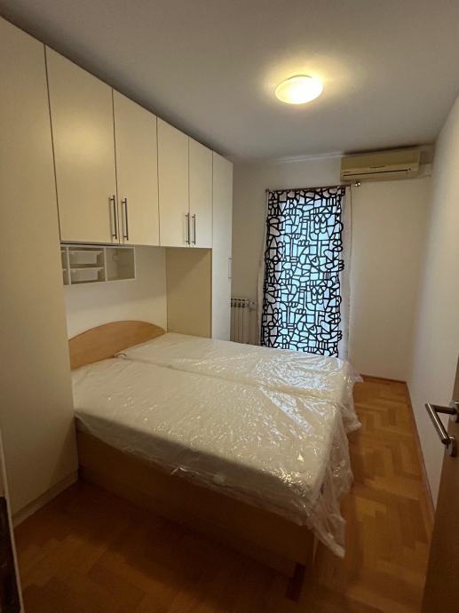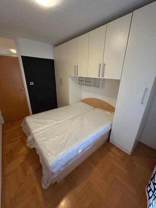 Spavaća soba sa krevetom i novim madracima 200x80 cm. U stanu ima puno ormara i polica za pohranu odjeće, obuće i knjiga.