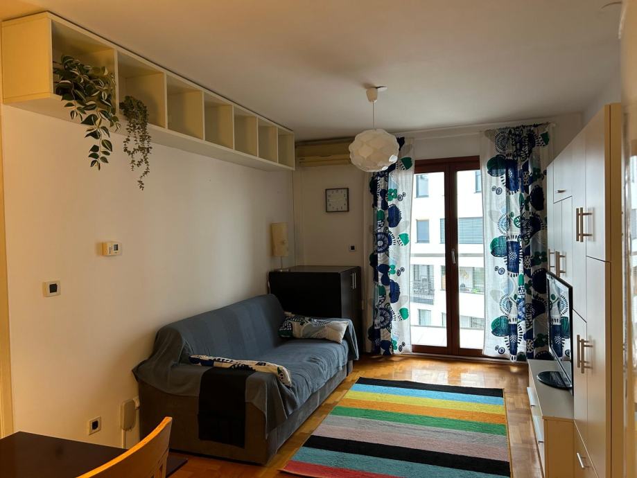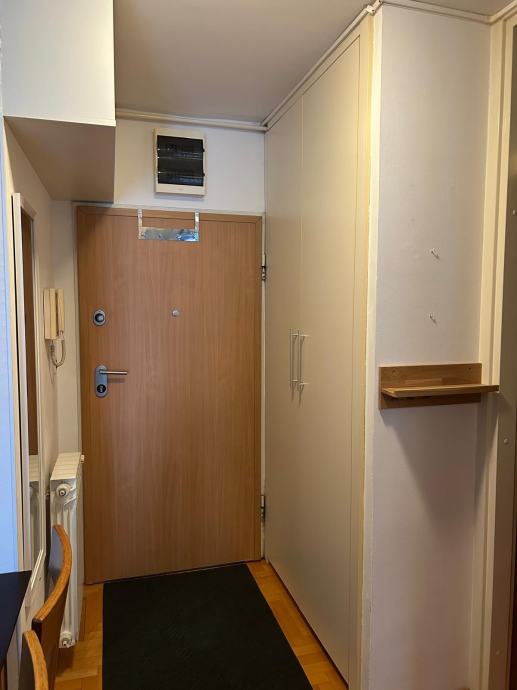 Prostor se sastoji od ulaznog hodnika (sa ugradbenim ormarom), kuhinje povezane s dnevnim boravkom, balkonom, spavaćom sobom i kupaonicom sa WC-om.