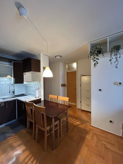 Iznajmljujem 2-sobni stan 40 m2, Knežija, Horvaćanska cesta, 4 kat, lift, potpuno namješten, etažno plinsko grijanje sa garažnim mjestom. Ovo je prvi najam stana. Zaseban vodomjer, jako male režije u stanu. U stanu multi split klima uređaj, 1 vanjska jedinica sa 2 unutarnje jedinice. Nove zaokretne aluminijske grilje na balkonskim vratima za zaštitu od sunca .