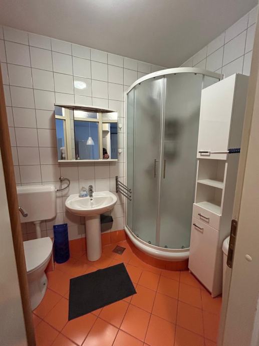 Kupaonica je s novom tuš kabinom, perilicom-sušilicom rublja i WC-om.