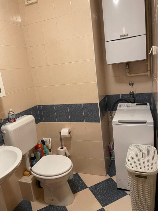 Kupaonica je s tuš kabinom, novom perilicom rublja i WC-om.