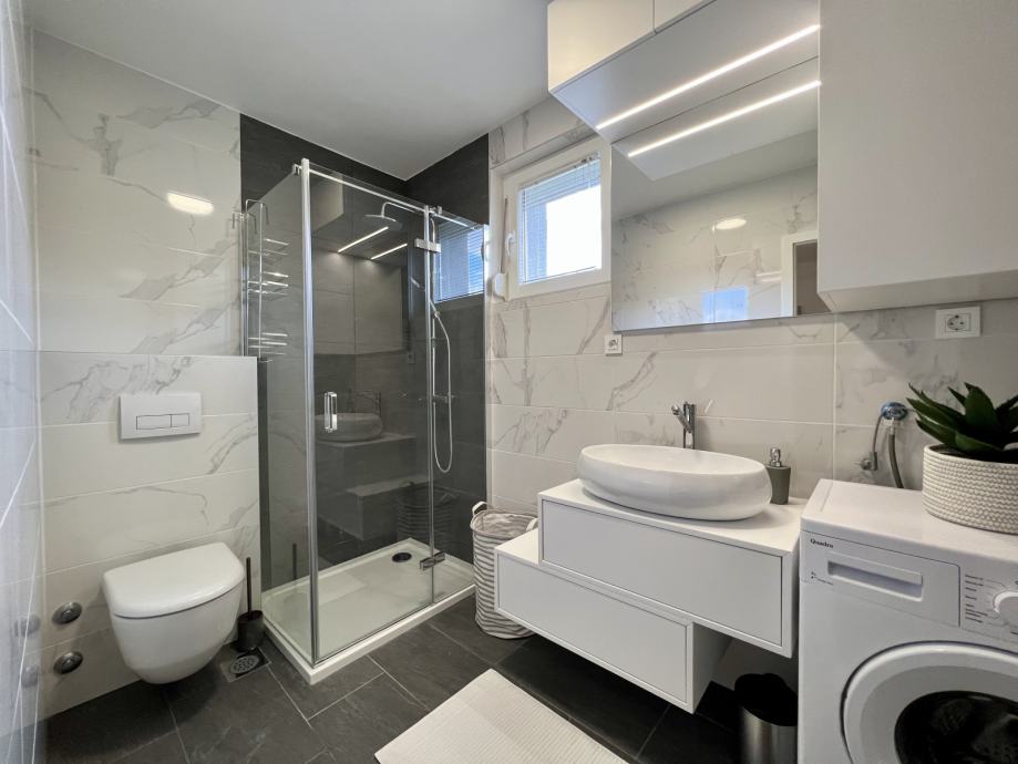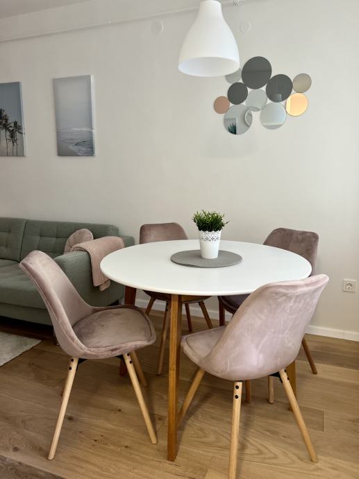 Stan je potpuno novouređen i novonamješten u 2022g te malo korišten. Opremljen je perlicom posuđa, perilicom rublja, klimom te posjeduje protuprovalna vrata.
