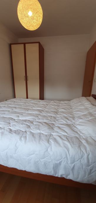 dvije spavaće sobe (manja sa balkonom) , kupaone sa wc-om , dnevni boravak sa blagovaonom i velikom lođom ,kuhinja i predsoblje.
