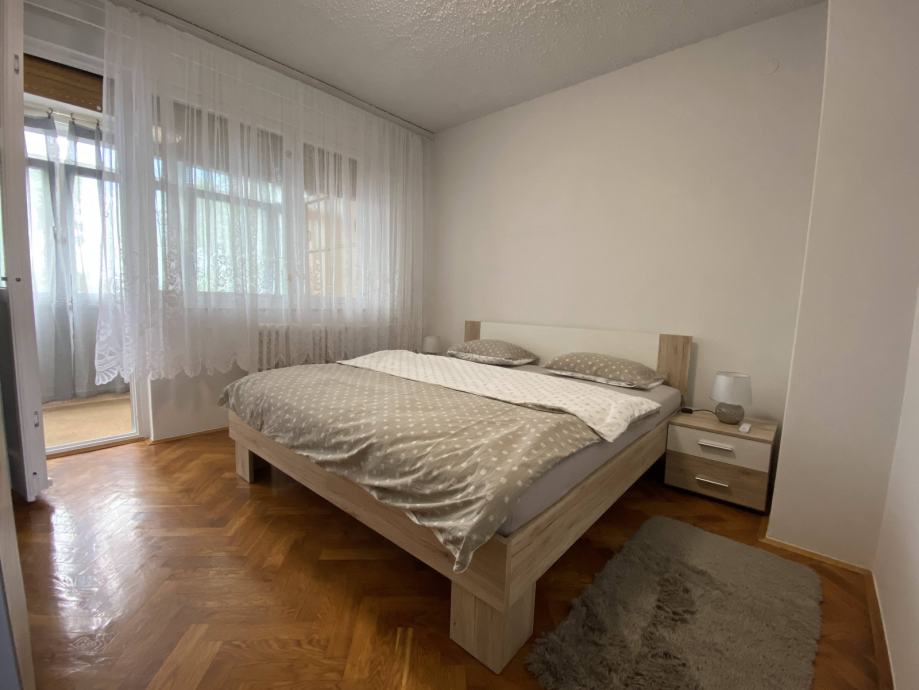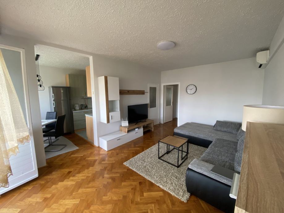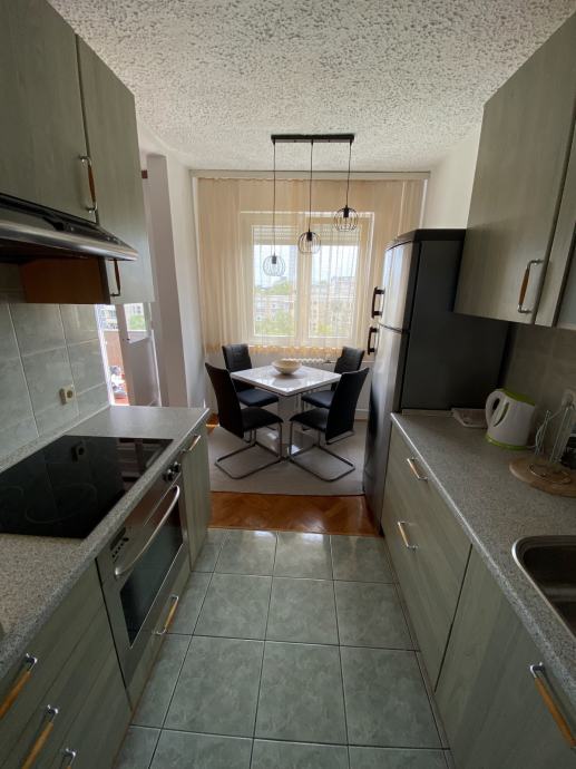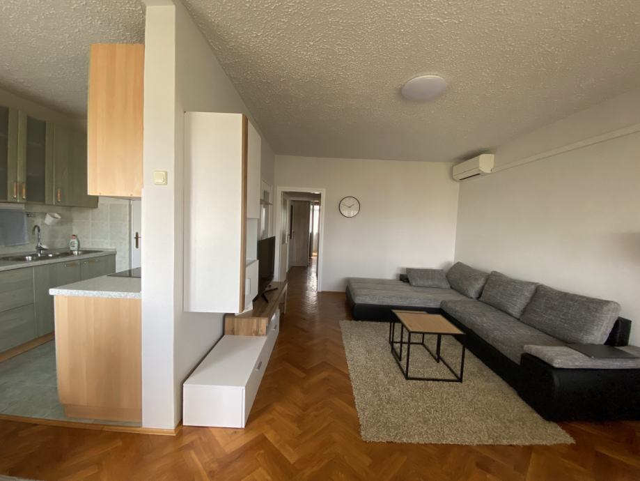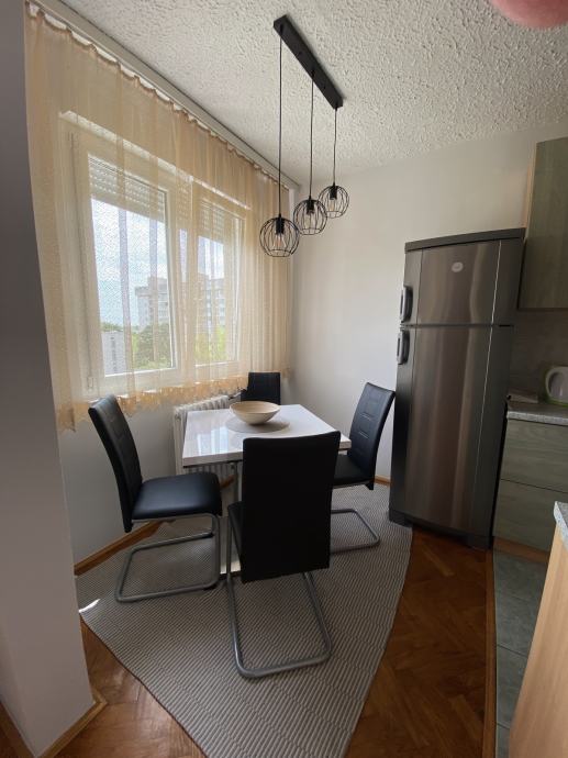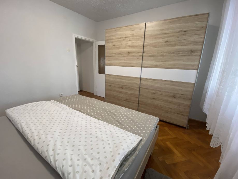 Knežija, ulica Tina Ujevića, iznajmljuje se obnovljeni 2,5 sobni stan na 5. katu zgrade od 9 katova s liftom. Zgrada je izgrađena 1970. godine, građena je prema protupotresnim pravilima te niti zgrada niti stan nemaju oštećenja nakon potresa iz 2020. Stan se sastoji od ulaznog prostora, dnevnog boravka, kuhinje, dvije sobe, predprostora, kupaonice, loggije i balkona, korisne površine 62,74 m2, u naravi 66,55 m2. Stan je izrazito svijetao te prozračan s orijentacijom I-Z. Na istočnoj strani se nalazi 3,5 m2 veliki balkon, dok je na zapadnoj strani 5,3 m2 zatvorena loggia. U neposrednoj blizini zgrade nalaze se: međunarodna osnovna škola, vrtić, dom zdravlja, tramvaj (Savska, Horvaćanska), bus (Zagrebačka avenija, Selska), niz trgovina (Spar, Konzum, Lidl, Diona, DM, Mlinar) te ostali sadržaji potrebni za ugodan život. Oko zgrade je dostupan veliki broj javnih parkirnih mjesta bez naplate. Pušenje nije dozvoljeno u stanu, ali je moguće koristiti balkon u te svrhe. Režije nisu uključene u cijenu stanarine, a uz prvu najamninu potrebno je uplatiti i polog u iznosu mjesečnog najma. Prednost dugoročnog najma.