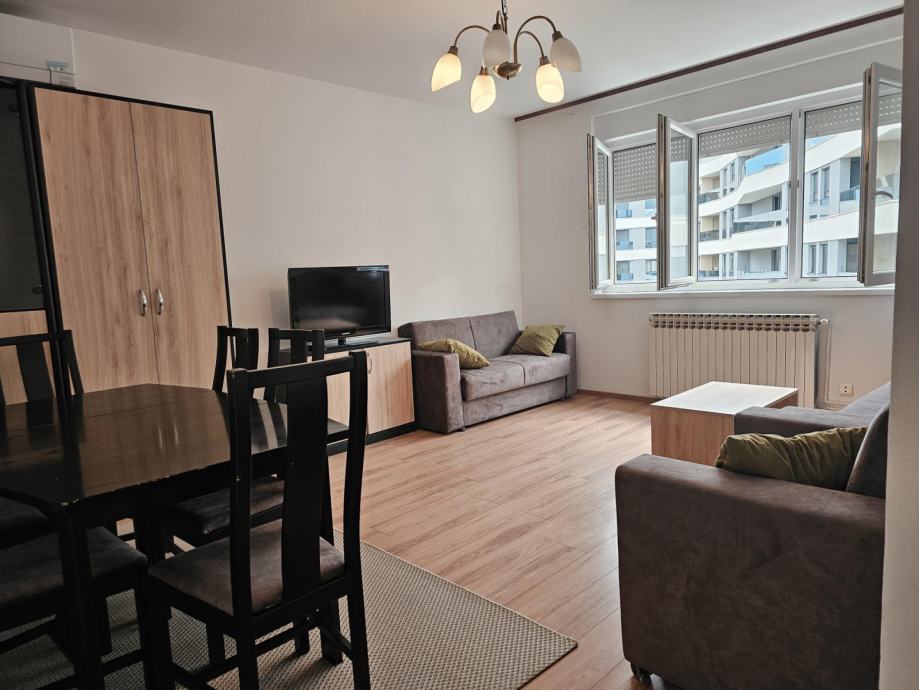 Dugoročni najam: VESLAČKA ulica, treći kat stambene zgrade bez lifta, s pogledom na zelenilo. Neposredna blizina tramvajske stanice, trgovine, savskog nasipa, igrališta Veslačka, Knežije. U blizini HRT-a, dva studentska doma (Cvjetno i Sava), SRC Mladost, Arena Centar.