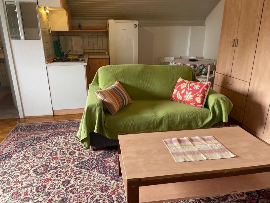 Garsonijera se nalazi u sklopu obiteljske kuće s kojom dijeli dvorište, ali ima zaseban ulaz i nalazi se u potkrovlju.