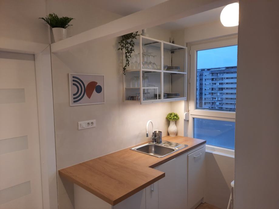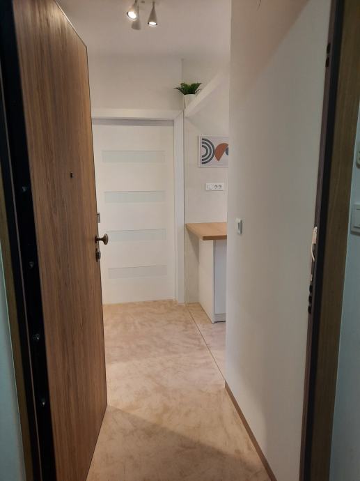 Stan (31 m2) funkcionalno je i moderno uređen, svijetao i ugodan za stanovanje. Sastoji se od velike sobe, kupaonice i ulaznoga hodnika koji je otvoren s kuhinjom. Nalazi se na zadnjem katu zgrade koja cijelom dužinom ima veliku terasu pa se uz južnu stranu stana može uživati na terasi. Zgrada se nalazi na križanju Ulice grada Vukovara i Strojarske, u blizini Autobusnog kolodvora. Svi su sadržaji nadohvat ruke.