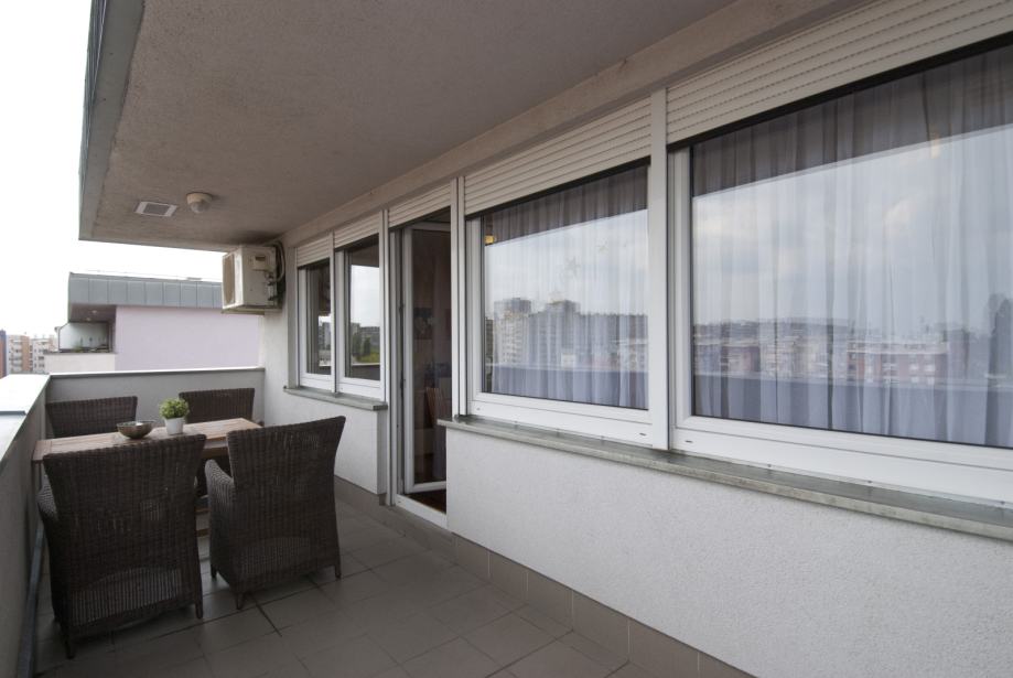 Prostrani novouređeni dvosaobni stan s velikom terasom na zadnjem (5,) katu, novogradnje 250 metara od Vukovarska/Držičava