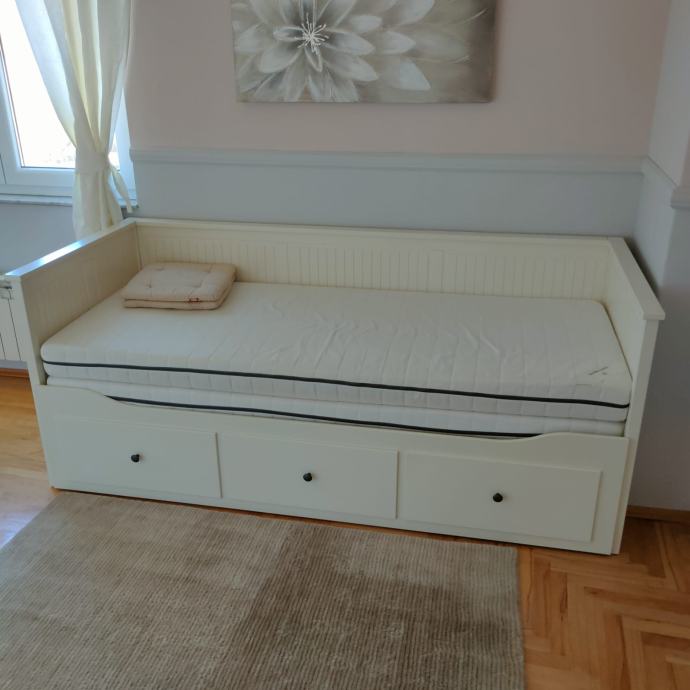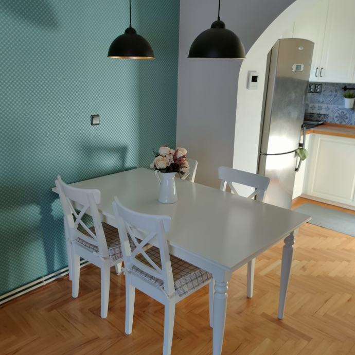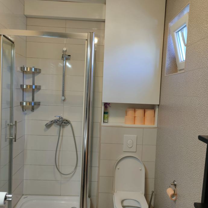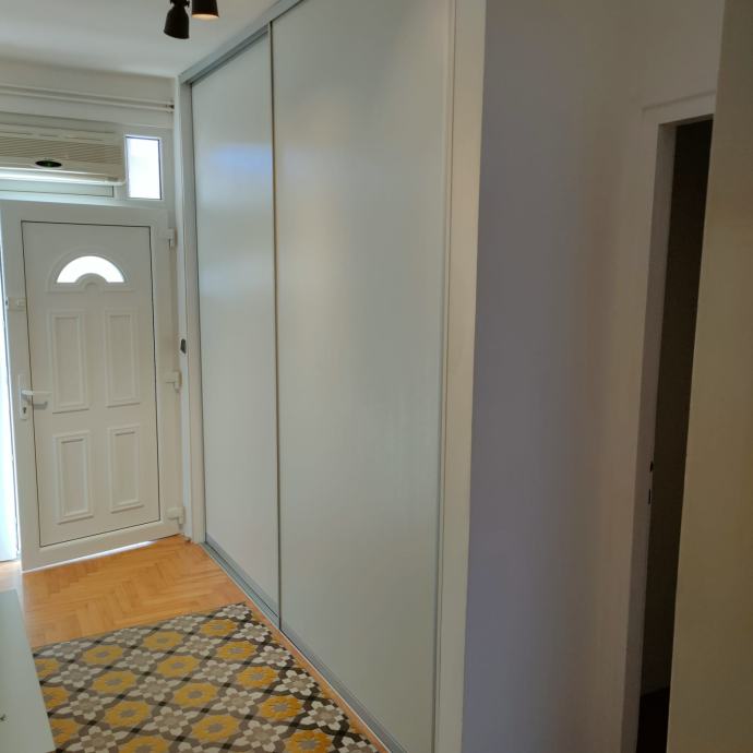 Kuća je etažirana i ima uredno vlastništvo.Stan u kući ima poseban ulaz i etažiran je 1/1.Posebna brojila za plin,struju,a za vodu ima interno brojilo tako da plaćate stvarnu potrošnju.Stan je u potpunosti uređen,ima sve potrebno za stanovanje.1.BRAČNA SOBA veliki moderan bračni krevet 180x200,ormar 3oox 270m ugradbeni do stropa,komoda i TV,dimenzija sobe je 16 m2, 2.DJEČJA SOBA krevet na razvlačenje Ikea 90 x200cm ,a kada je razvučen180x 200cm,veliki ormar 300x 250 cm soba ima12m2