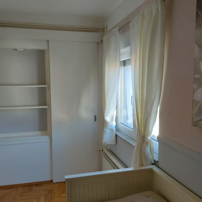 3.DNEVNI BORAVAK Kutna garnitura cca 250x250cm clubu stolić,komoda ,blagavaonski stol i 4 stolice, TV, boravak ima 16 m2. 3.KUHINJA se nadovezuje na boravak , od uređaja ima Candy smart perilicu za suđe, samsung hladnjak,ploča za kuhanje,pećnicu i mikrovalnu, Bosch kuhalo za kavu, Franke veliki granitni sudoper.Kuhinja ima 6 m2,4.HODNIK ima veliki ugradbeni ormar 300x280 cm,klupica za sjedenje ,vješalice i ladičar sa 4 ladice za odlaganje dimenzije hodnika su 8 m2.5.KUPAONA SA WC tuš kabina 90x90 cm ,umivaonik 80 cm ,ogledalo i 2 ormarića za odlaganje te poličar,perilica sušilica Samsung 8 kg pere ,a 5 suši.6 ,dimenzija kupaone je 5m2. OSTAVA cca 2 m2 police.Komarnici na prozorima.Šupa od 4.2m2,zajedničko dvorište.Zainteresirani mogu doći pogledati osobno.Položaj stana je blizu osnovne škole Marina Držića cca 200m,Dom zdravlja Trnje 500m,ljekarna ,dućan 100m za osnovne potrebe,autobusni kolodvor otprilike 10 min laganog hoda te svi fakulteti u ulici grada Vukovara na 1 do2 km,blizina glavnog kolodvora i ostalih sadržaja.Lokacija TOP