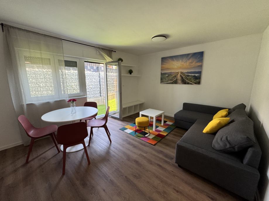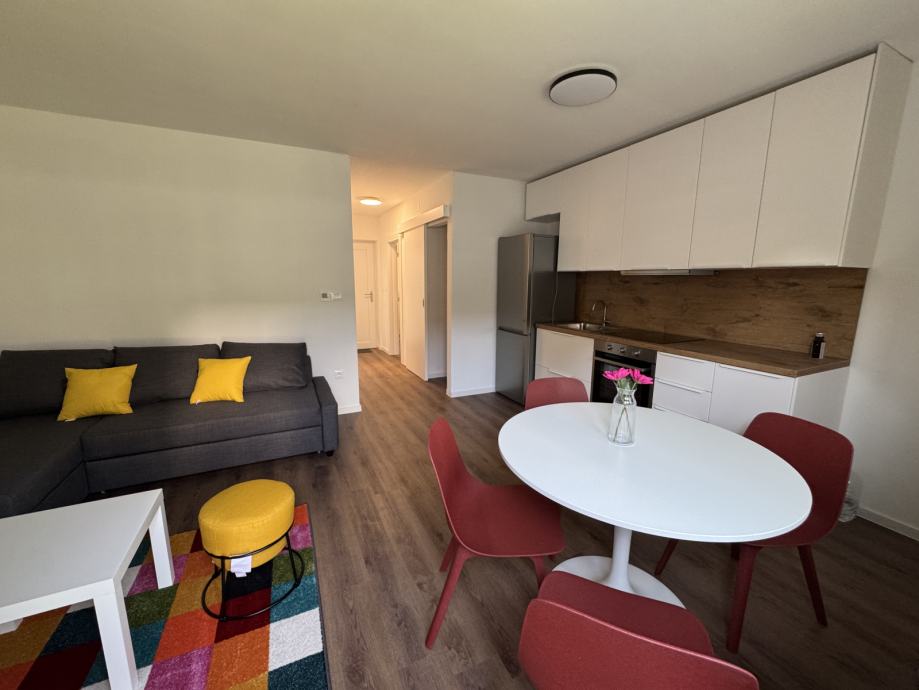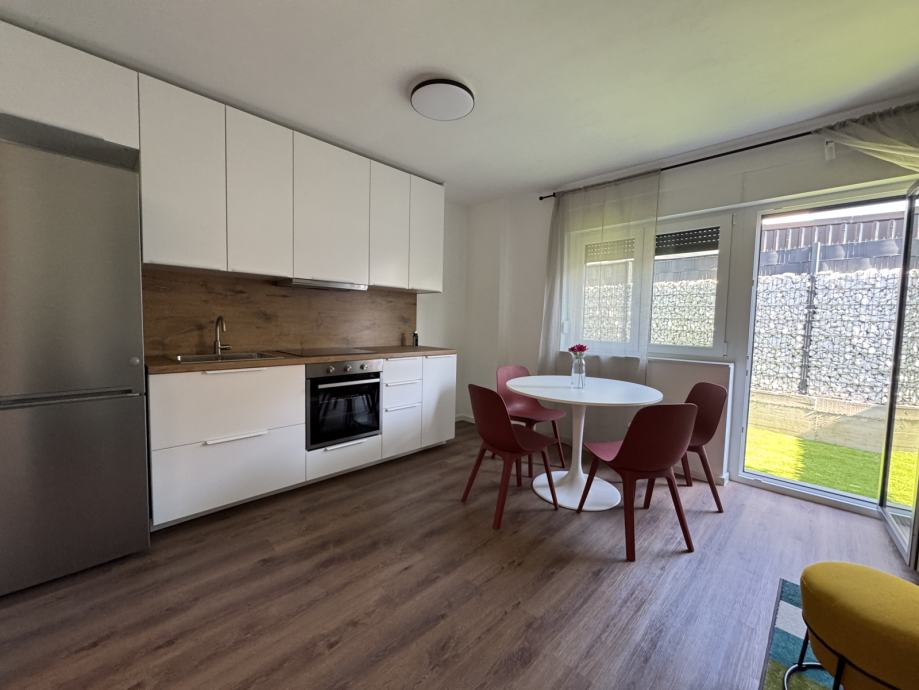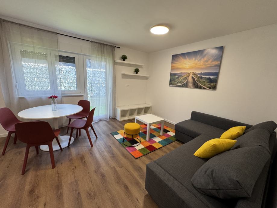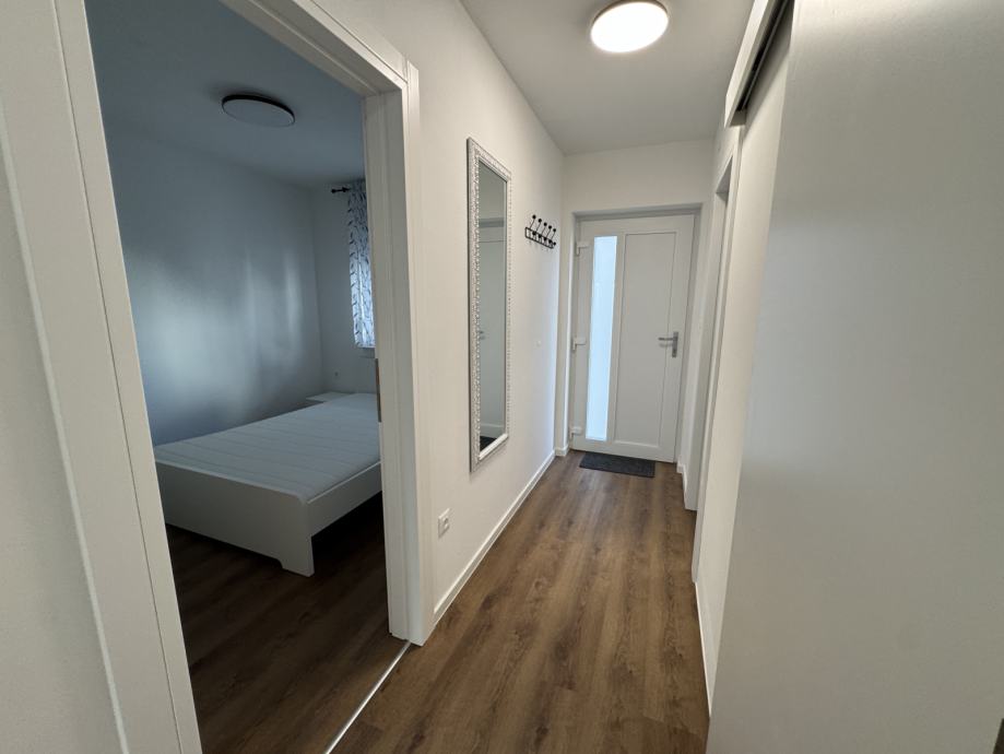Predmet najma je stan S2 u prizemlju, novi objekt s 4 stana, prvo useljenje, stan kompletno namješten, klimatiziran, dizalice topline - podno grijanje, dvostrano orijentiran sjever - jug.