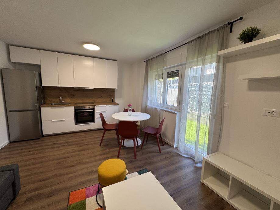 Stan se sastoji od ulaza/ hodnika, spavaće sobe, vešeraj, kupoanica, dnevni boravak s kuhinjom i blagovaonicom, stan ima vrt / terasu 16,50 m2 i jedno parkirno mjesto.
