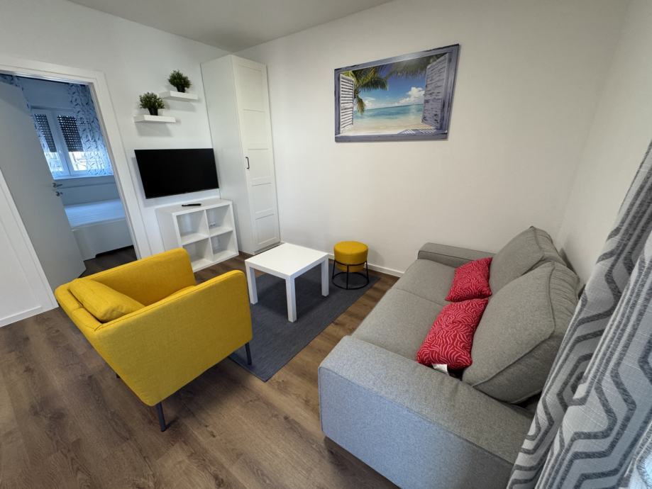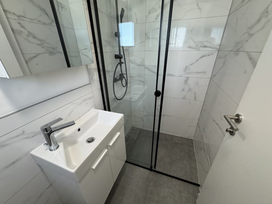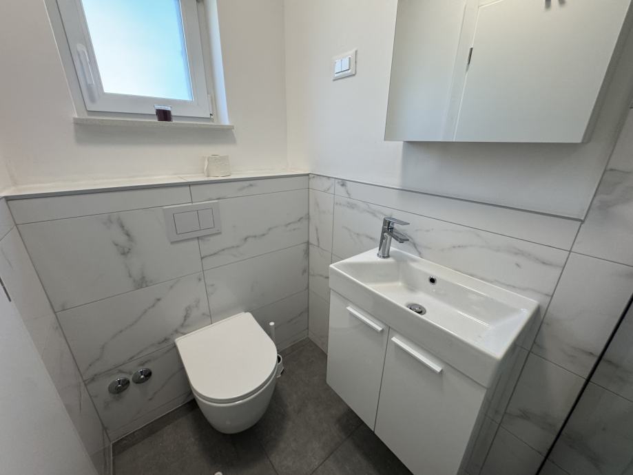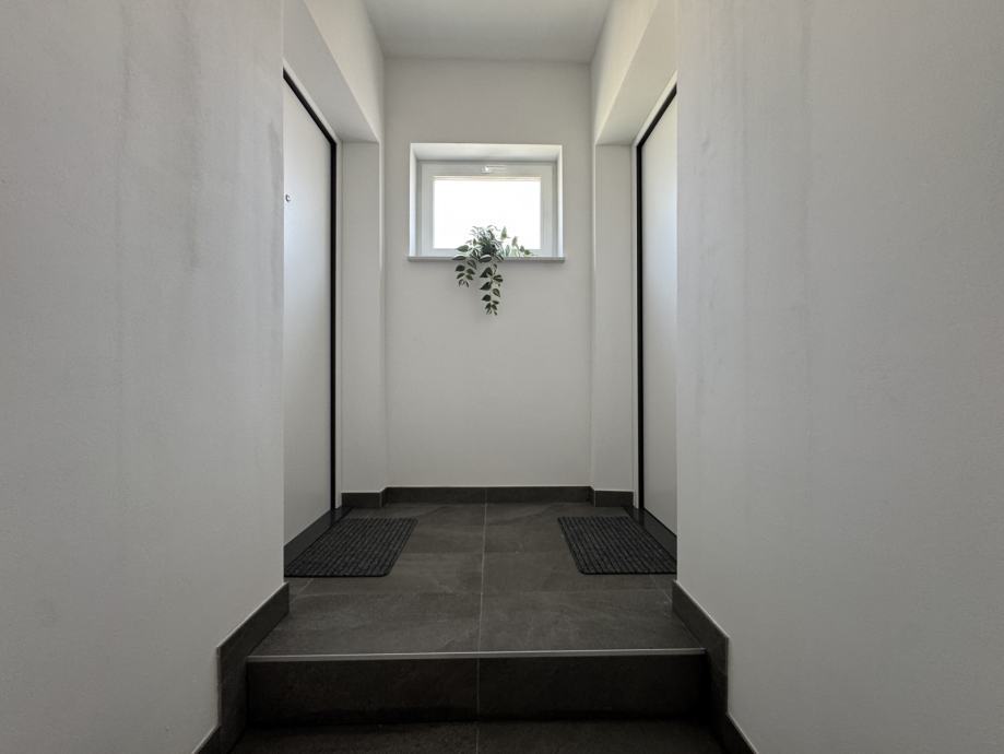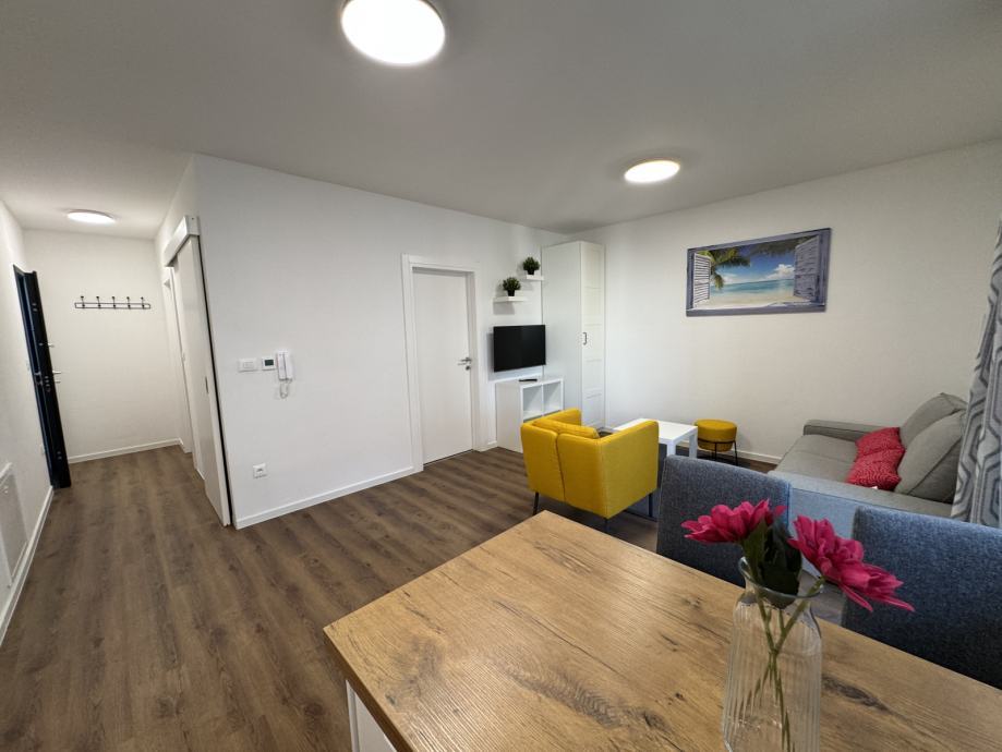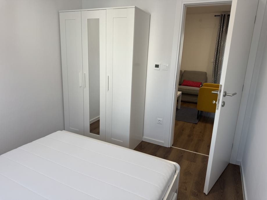 Predmet najma je stan S4 na 1. katu, novi objekt s 4 stana, u ulici FRANA MAŽURANIĆA, stan kompletno namješten, klimatiziran, dizalice topline - podno grijanje, dvostrano orijentiran sjever - jug.