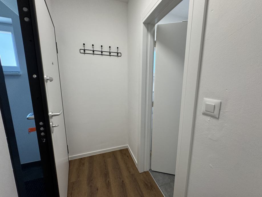 Stan se sastoji od ulaza/ hodnika, spavaće sobe, vešeraj, kupoanica, dnevni boravak s kuhinjom i blagovaonicom, stan ima lođu cca 7,5 m2 .