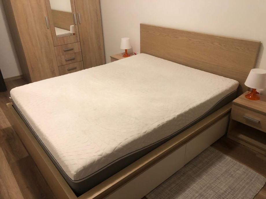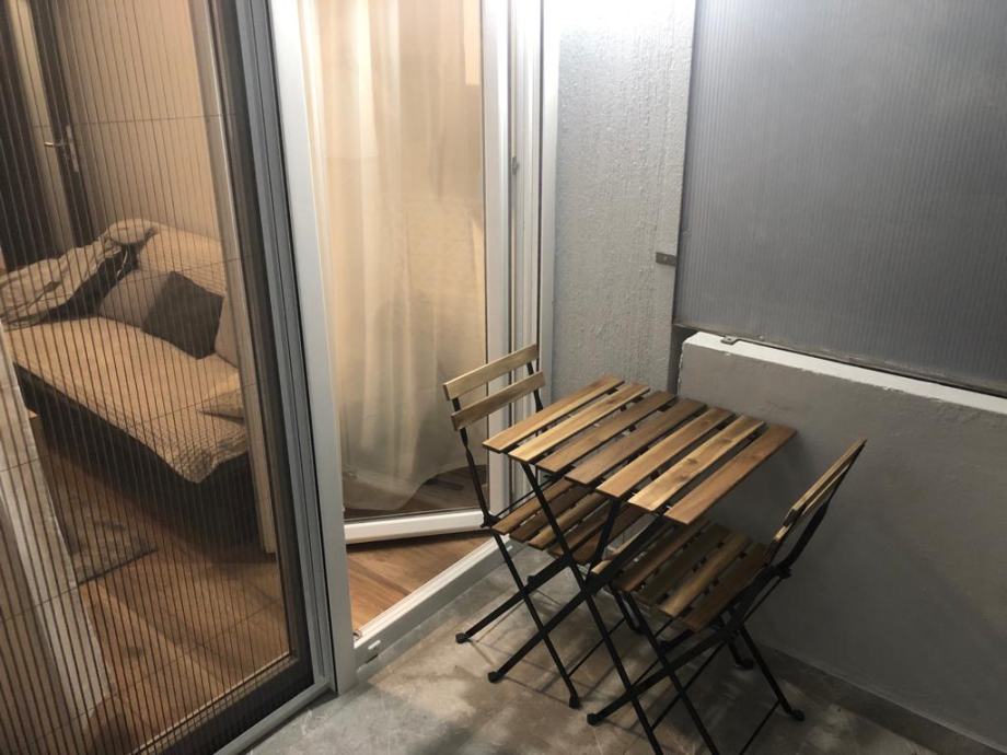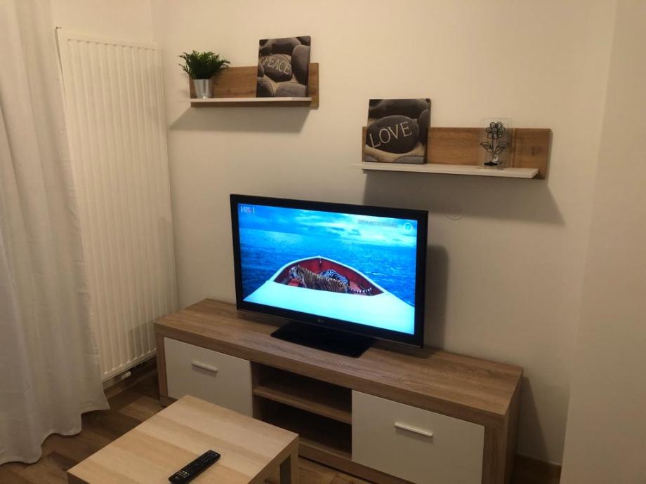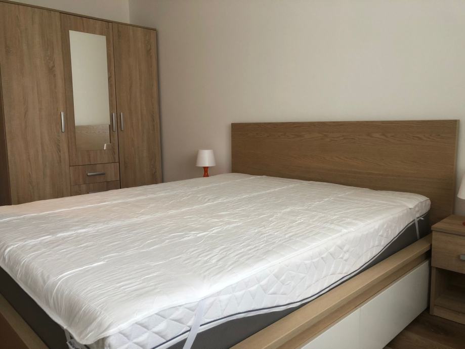Sastoji se od hodnika s predsobljem, wc-a i kupaonice sa walk in tušem, kuhinje sa perilicom posuđa , klimatiziranog boravka sa tv-om i prostrane sobe sa velikim ormarima, krevetom 160x200, madracem od memo pjene u gold klasi, radnim stolom i nocnim ormaricima. zbog velikih ormara i mogucnosti odlaganja pod krevetom stan omogucuje potpunu urednost. Također stan ima i balkon s pogledom na park te malo spremište u prizemlju zgrade.