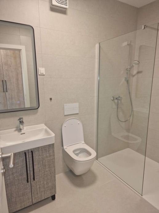 Moderan stan na prvom katu novogradnje sa jednim vanjskim natkrivenim parkirnim mjestom i dodatnim nenatkrivenim mjestom. Podno grijanje u cijelom stanu, dizalica topline Vaillant, klima Bosch, video portofon. Sastoji se od hodnika, spavaće sobe, spavaće sobe 2, kupaone, dnevnog boravka sa kuhinjom i blagavaonom sa izlazom na loggiu.Spremište u podrumu površine 5 m2. Stan je kompletno namješten sa novim namještajem rađenim po mjeri, novi aparati. Kućni ljubimci nisu dopušteni. Minimalno trajanje najma 1g, obavezan polog u visini jedne najamnine. Obavezna ovjera ugovora o najmu. Režije nisu ukljućene u cijenu najma. Optički internet dostupan u zgradi.Adresa Brezovička cesta 11D. 091/2004 778. Molim cjenjene agencije da ne zovu.