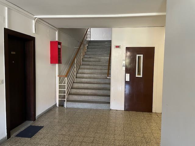 Stan se nalazi na visokom prizemlju sa pristupom za invalide, ispod kojega je grijani stambeni prostor, u osmokatnoj zgradi okruženoj zelenilom. Lođa orijentirana na zapad, gleda u park.