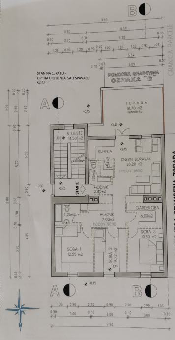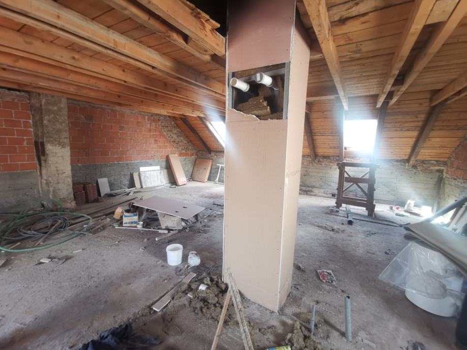 Stanu pripada i etaža potkrovlja što je u naravi ROH-BAU prazan prostor sa svim priključcima iz donje etaže - stana na 1.katu.