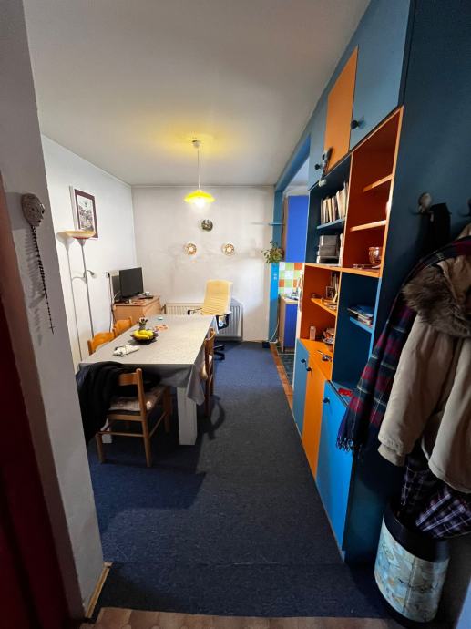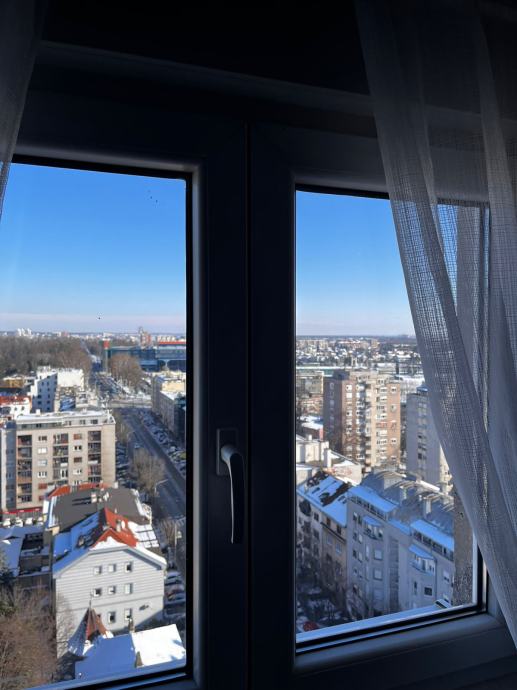 Prodajem stan na 15. katu nebodera u Maksimiru (u blizini Zagrebačke banke i MIOC-a). Površina stana je 42 četvorna metra. Sastoji se od cjeline u kojoj su spojeni hodnik, blagovaona i kuhinja; wc+kupaone; dnevne sobe i spavaće sobe. Budući da je na zadnjem katu nebodera, stan ima pristp velikoj terasi s predivnim vidikovcem – ta terasa nije uključena u kvadraturu stana (jer je zajednička imovina zgrade), ali je u praksi potpuno dostupna za upotrebu (pod terase bi bilo poželjno ofarbati). Stan ima etažno plinsko grijanje i klimu. Preporuka je da se kupaona djelomično obnovi (tj. da se zamijeni kada). U krugu od 100 m su trgovine, ljekarna, banka, osnovna škola (Haramnbašićeva) i 15. gimnazija. U blizini su pošta i Ekonomski fakultet. Park Maksimir je udaljen cca 500 m. Odmah ispred nebodera nalazi se tramvajska stanica. Vožnjom tramvajem stiže se za 10 minuta do Trga bana Jelačića.