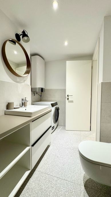 • stan je opremljen perilicom i sušilicom rublja, hladnjakom s ledenicom, klimom, indukcijskom pločom i električnom pećnicom