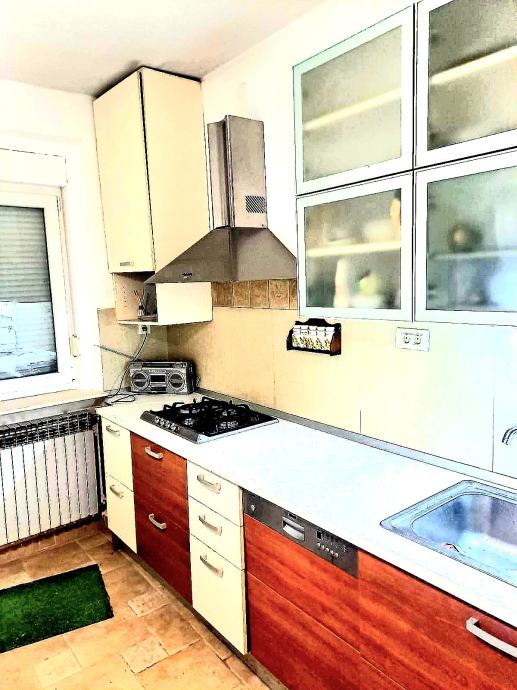 Stan se sastoji od dvije velike i jedne manje sobe, kuhinje, kupaonice, WC-a, predsoblja i 2 balkona+vrtna terasa+ vrt.. Ima centralno etažno grijanje. U potpunosti je namješten. Ispred kuće ima mjesta za parkiranje.