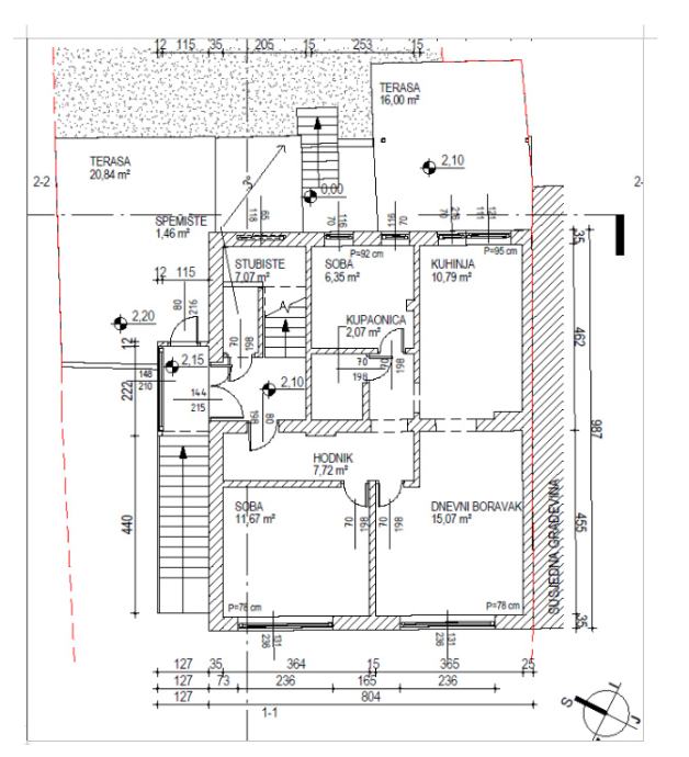 Položaj stana prema ulici odnosno istoku je kao 1.kat.