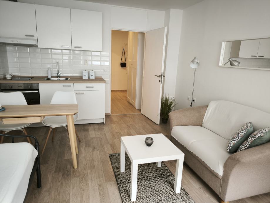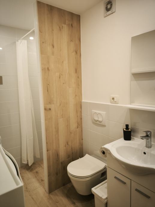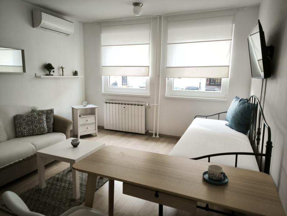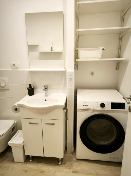 Stan je potpuno opremljen: kompletna kuhinja, klima uređaj, televizor, kombinirana perilica sa sušilicom rublja (internet priključak rješava podstanar).