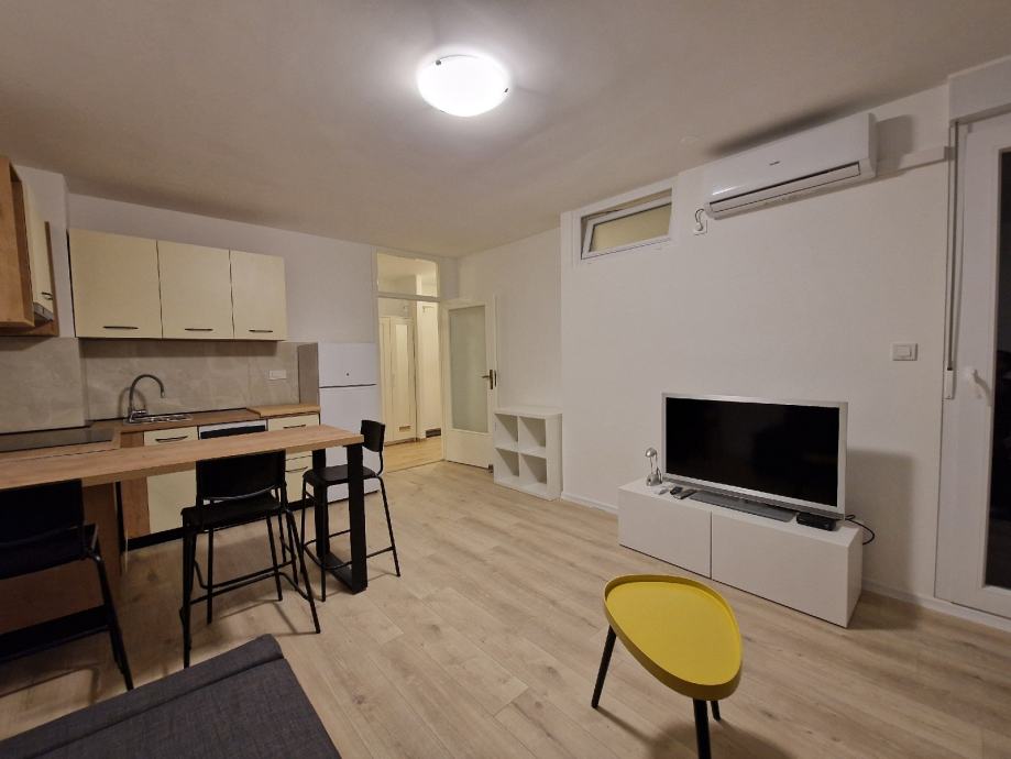 Raspored stana: Stan se sastoji od ulaznog hodnika, prostranog open space dnevnog boravka s kuhinjom i izlazom na balkon/lođu, moderne kupaonice i spavaće sobe koja nudi fleksibilan raspored kreveta.