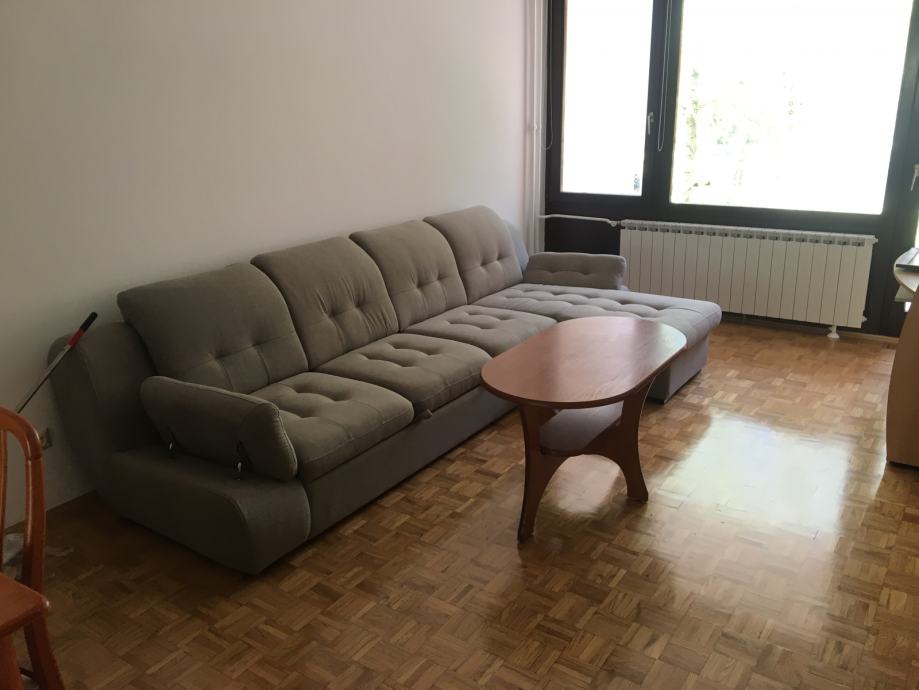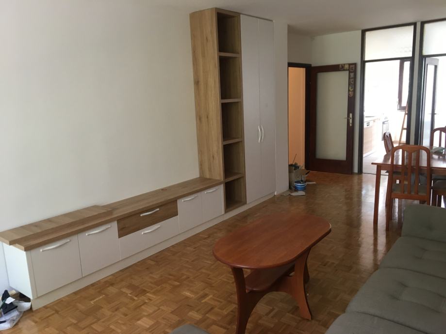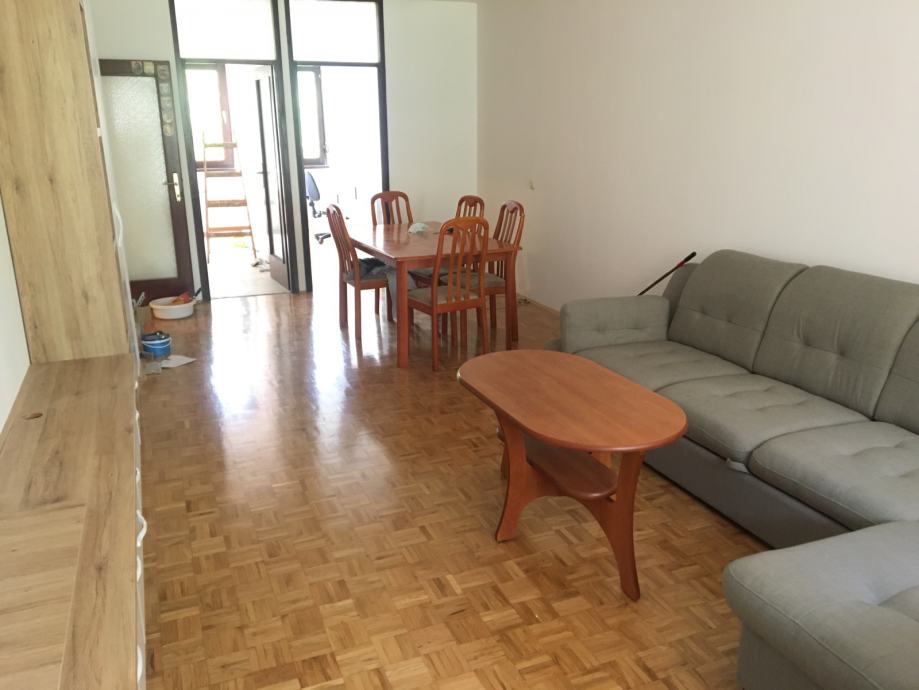 Iznajmljujemo stan sa dnevnim boravkom, kuhinjom, malom i velikom spavaćom sobom, kupaonom, wc, ostavom i balkonom.