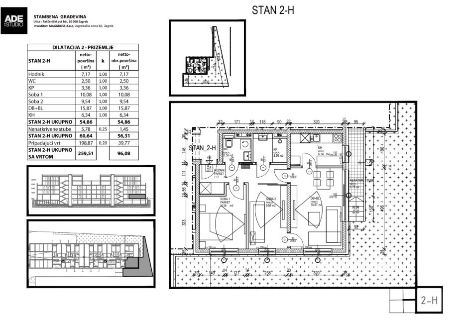 Stan se nalazi u sklopu novog stambenog projekt Rudeš, smještenog u zapadnom dijelu Zagreba – u ulici Rašenički put bb. Riječ je o modernom stambenom objektu s ukupno 64 stana, koji se gradi u skladu s najvišim standardima suvremene gradnje.