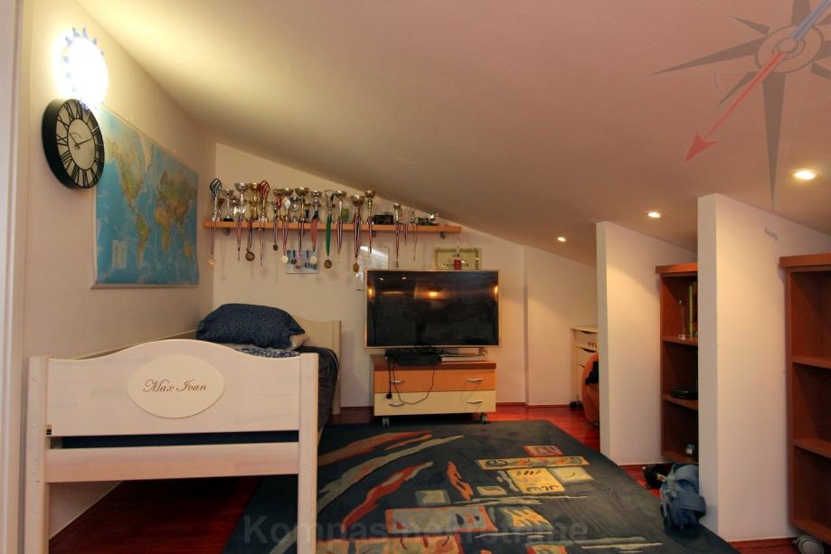 GORNJA ETAŽA (potkrovlje ): četiri sobe i predsoblje podne površine 81,93 m², nenatkrivena terasa podne površine 8,52 m².