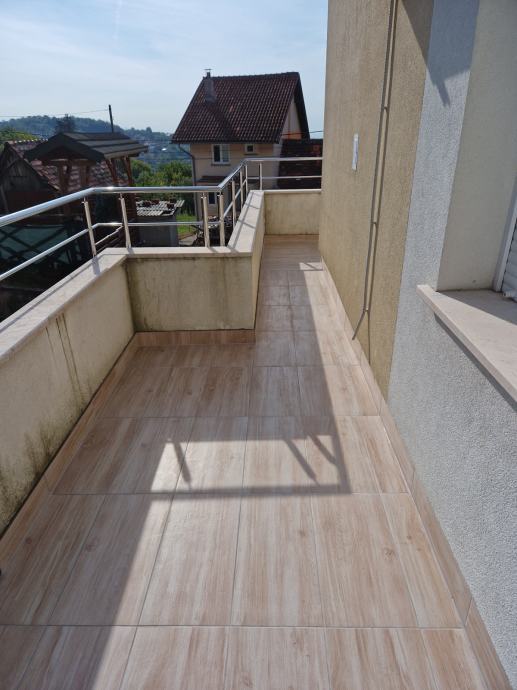 Stan je kao nov..Nalazi se u novijoj zgradi izgradenoj 2011 god. Sa svih strana je omeđen velikom balkonom sa kojeg se pruza predivni pogled na grad.Nalazi se na jako mirnoj lokaciji.U stanu je sav namjestaj raden po mjeri.
