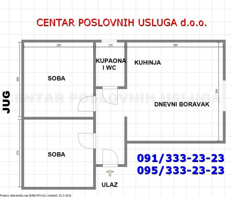 Uz odličnu makro i mikro lokacij ovaj stan za svoju kvadraturu ima i neobično dobar raspored (u 43 m2 TRI SMOBE), te Vam ga Agencija za promet nekretninama Centar poslovnih usluga d.o.o. toplo preporuča.