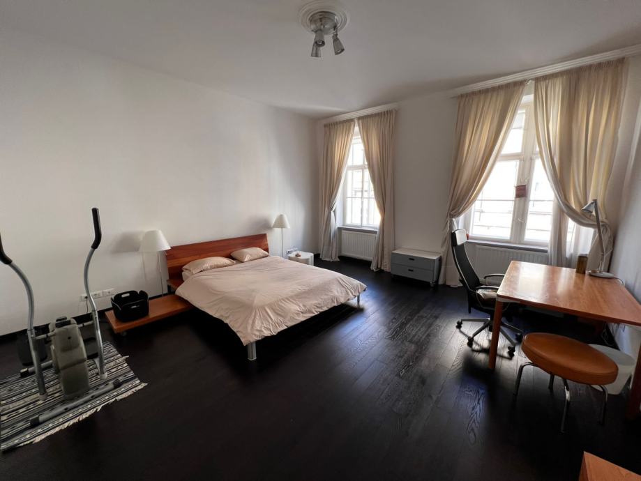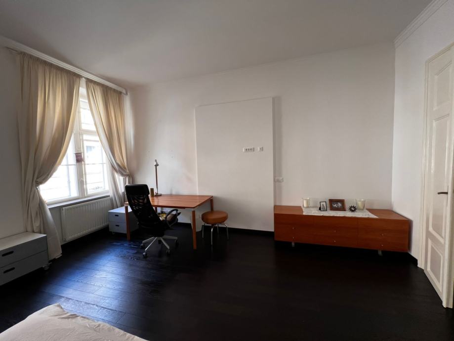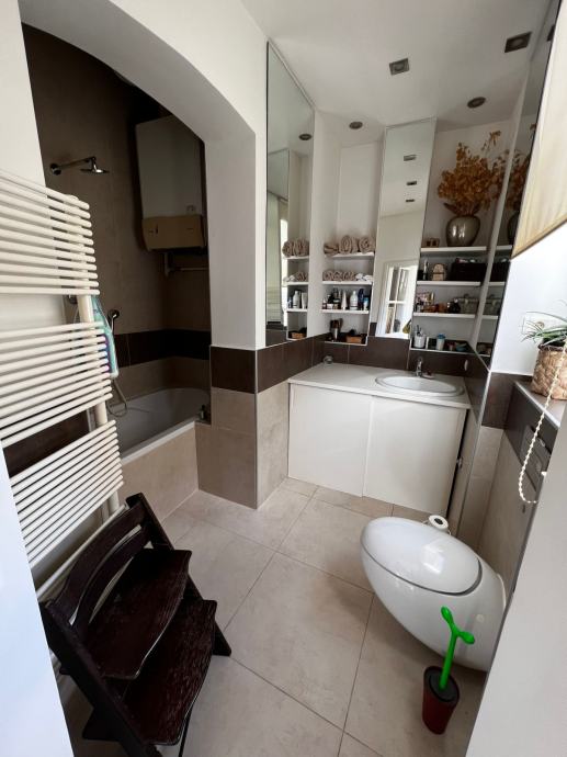 The apartment features new wooden joinery and is oriented to the south, west, and east, ensuring plenty of natural light. With concrete decks in the floors and ceilings, the apartment holds an energy certificate with a green label and has no damage from earthquakes. The heating system is gas-fired and individual. Parking is available for a fee, and the furniture is negotiable.