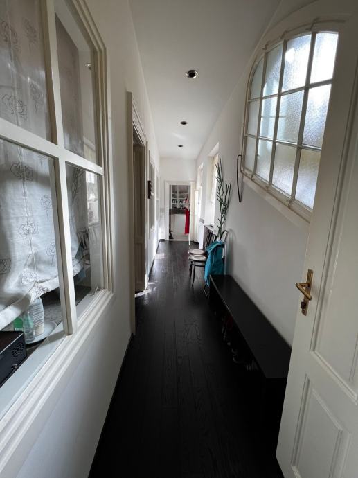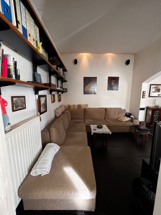 This apartment is located on the first floor of a building in Tomićeva Street. Spacious, bright, and thoroughly renovated in 2020, the apartment consists of an entrance hallway, a living room with a kitchen and dining area, an additional hallway, three bedrooms (one of which is currently used as a walk-in closet), and a bathroom.