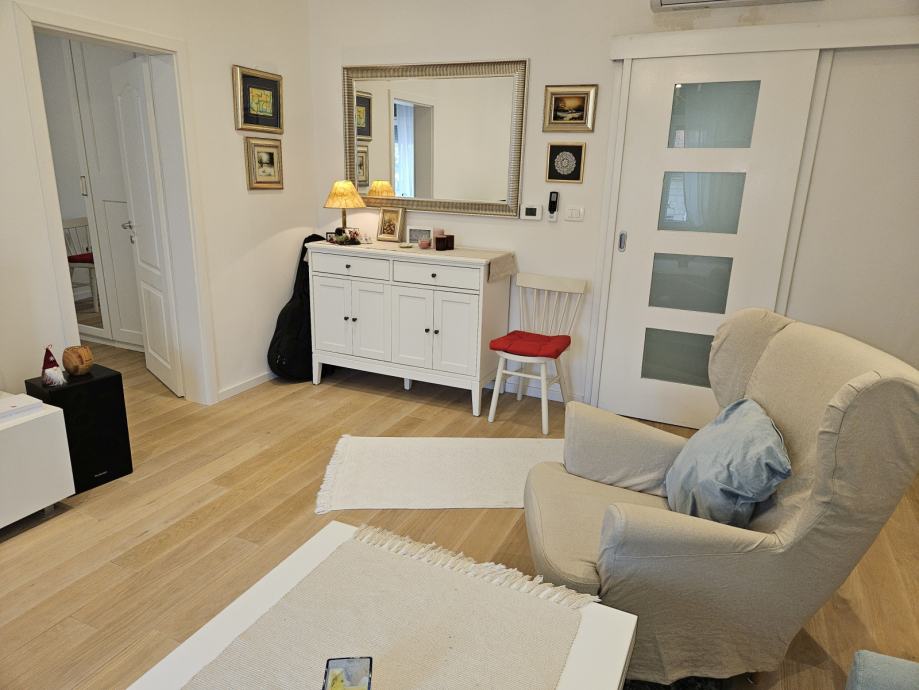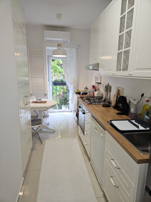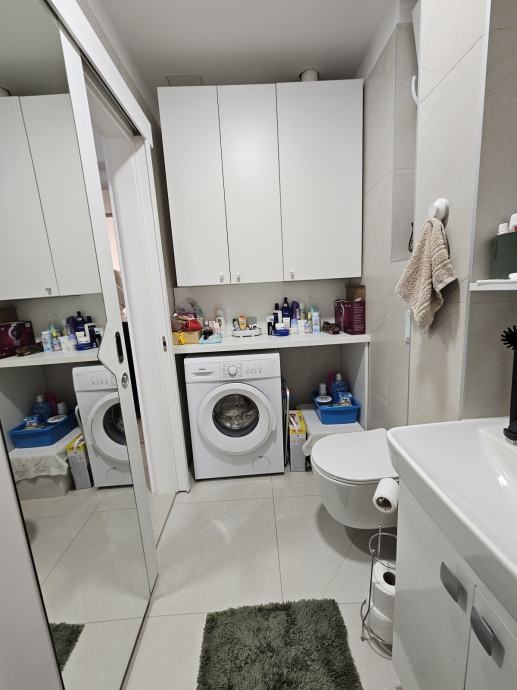 Ovaj stan-apartman je u potpunosti namješten, s kuhinjom koja uključuje plinski štednjak i perilicu suđa, dok parket na podu dodaje dozu topline. Praonica rublja unutar stana olakšava svakodnevne obaveze. Uz ulazni hol i protuprovalna vrata, pruža sigurnost i mir doma.