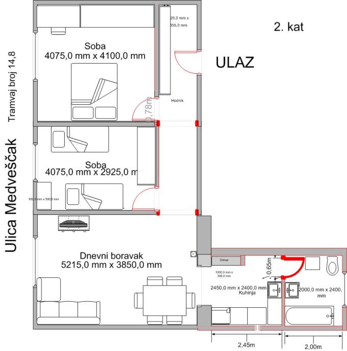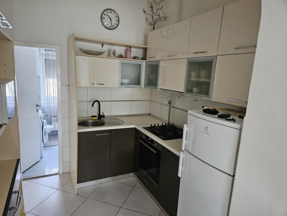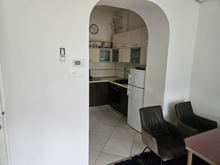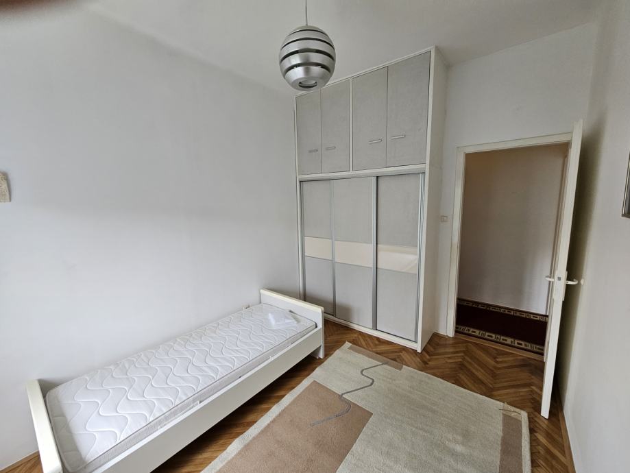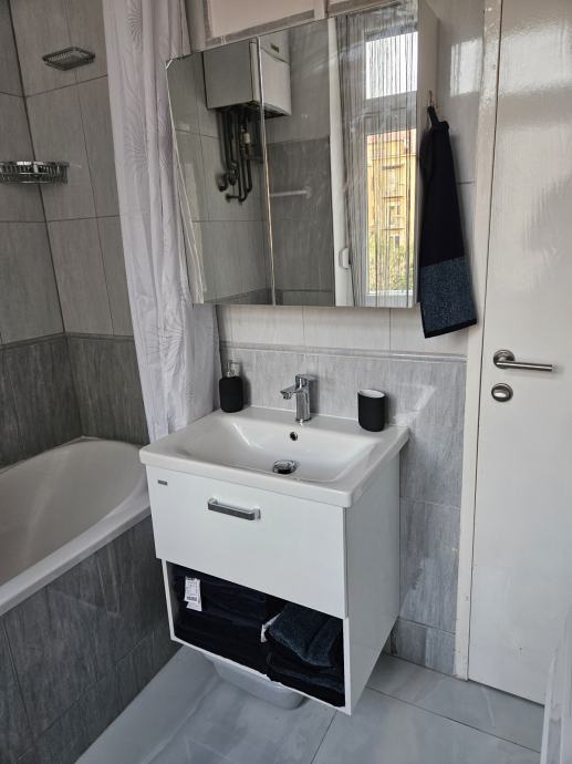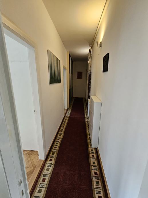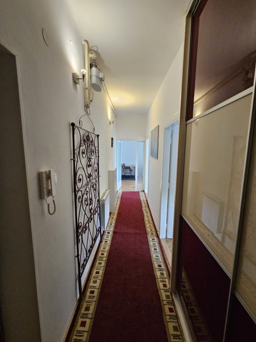 Stan je nedavno temeljito renoviran – novi kućanski aparati, kuhinjske fronte, posuđe, stolarija, madraci, posteljina, brušeni i lakirani parketi, LED rasvjeta, lusteri te potpuno obnovljena kupaonica i WC. Zidovi su svježe obojeni, a visokim stropovima i puno prirodnog svjetla, stan odiše svježinom, prostranošću i modernim dizajnom.