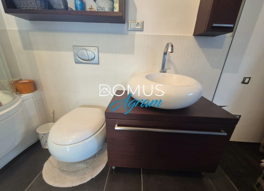Stan je opremljen visokokvalitetnom opremom i materijalima; priprema za alarm, sef, portafon, ormari i police po mjeri, kupaonica je opremljena visokokvalitetnim pločicama i sanitarijama; Villeroy & Boch umivaonik i wc školjka, Jaccuzzi kada…