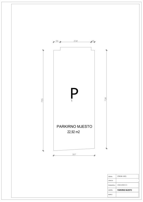 Stan je površine iskazane u izvatku iz zemljišne knjige od cca. 60 m2, sastoji se od ulaznog hall-a, open space dnevnog boravka s kuhinjom te izlazom na balkon, kupaonice s kadom i wc-om, spavaće sobe te još jedne sobe koja je trenutno u funkciji radne sobe/garderobe.