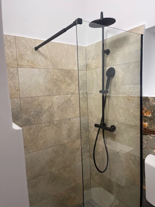 Kupaonica moderno opremljena s termostatskim tušem. Odvojen vešeraj (perilica/sušilica). Kompletno klimatiziran stan, grijanje podno u cijelom stanu na plin). Internet i televizija uključeni u najamninu. Ostale režije (voda, struja, plin i komunalni troškovi) plaća najmoprimac.